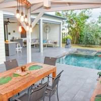 La villa Thaïs dispose d'un pool house de 20m2 doté d'une table 6/8 personnes.