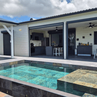 Profitez de la piscine en carrelage de Bali de 6 x 3,5 mètres avec une plage de 2 x 2 mètres !